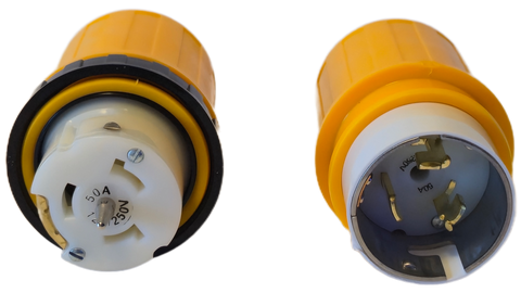 Power Spy™ #31 50A 120/240v Outdoor power monitor - Marine NEMA SS2-50P / CS6365 Twist-Lock plug to single NEMA SS2-50R / CS6364 Twist-Lock outlet on 1' tail with twin kWh meters